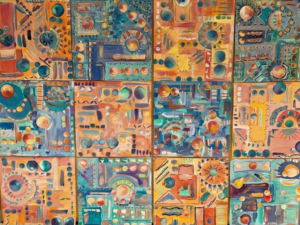 This month's abstract art creation was SO much fun for everyone! Each one turned out SO differently that I knew I needed to find a way to "recycle" some of my class samples too! Although this bulletin board display is not a particularly inventive way to accomplish this, it did the job! I will eventually have to throw some of them away, but I will deal with that later. Until then, I get to enjoy them just a little bit longer.
